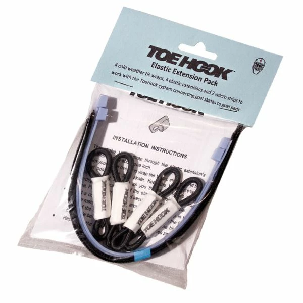 - Includes 4 cold weather tie wraps, 4 elastic extensions and 2 velcro strips to work with the ToeHook System connecting goal skates to goal pads
